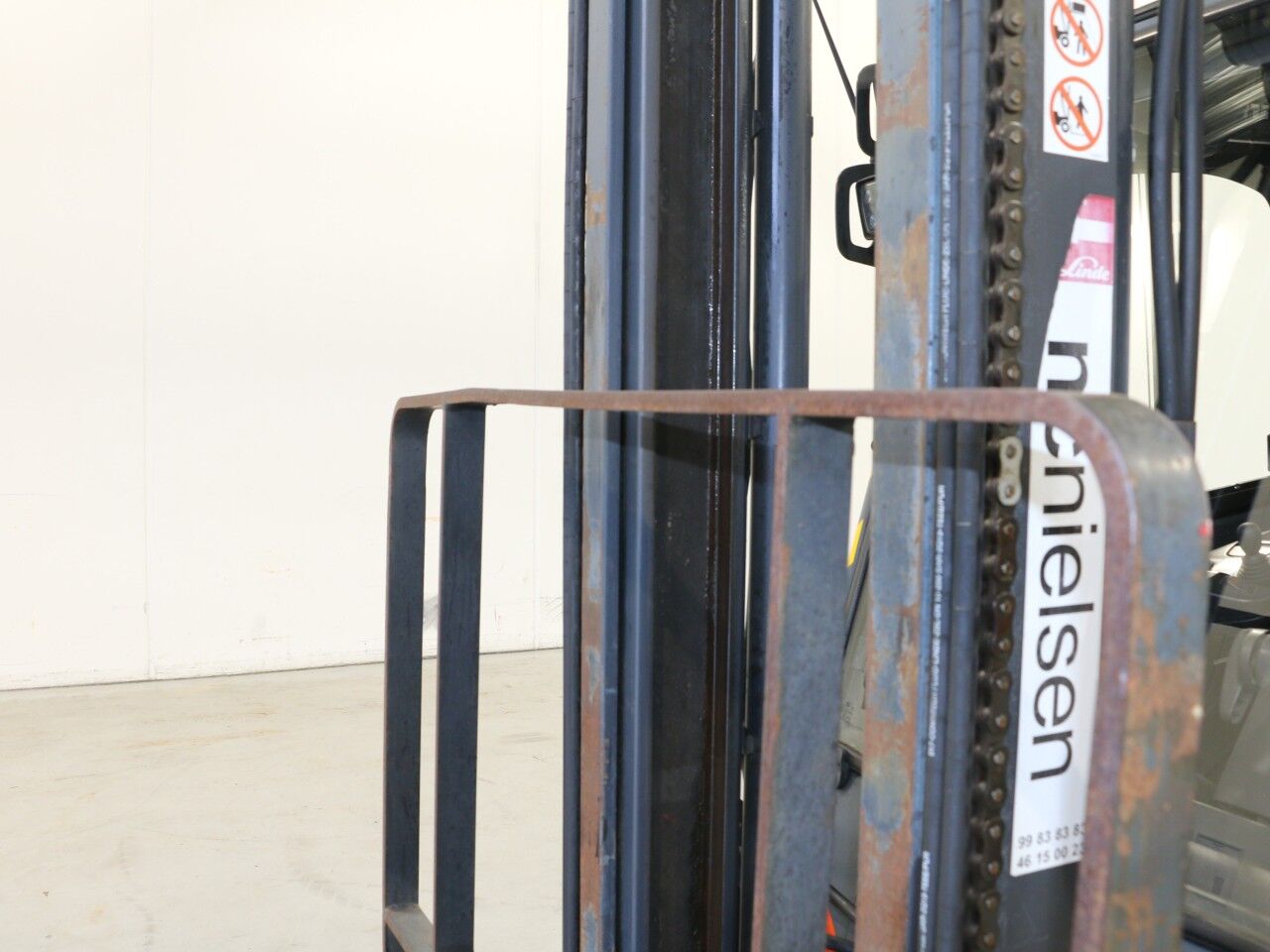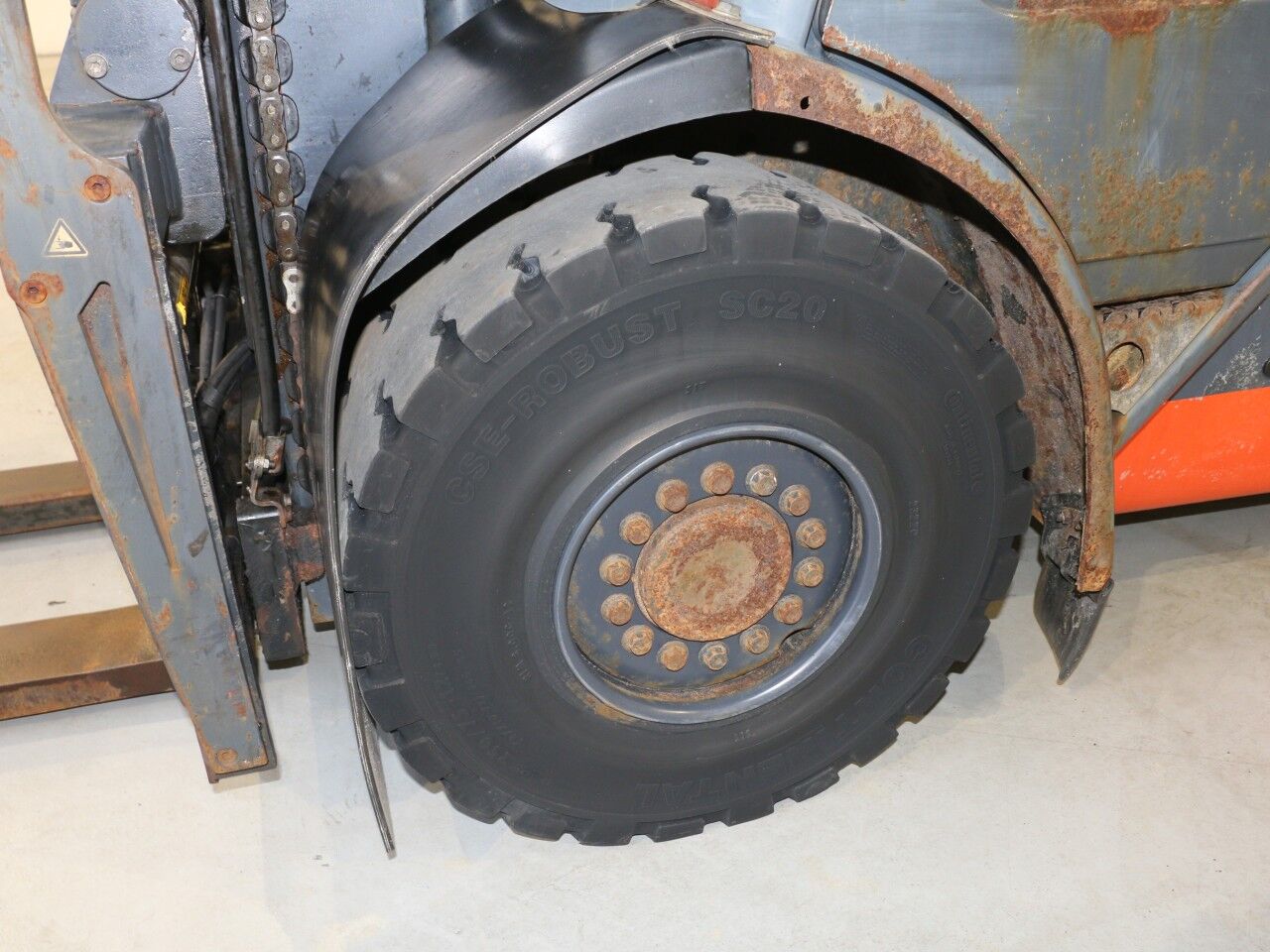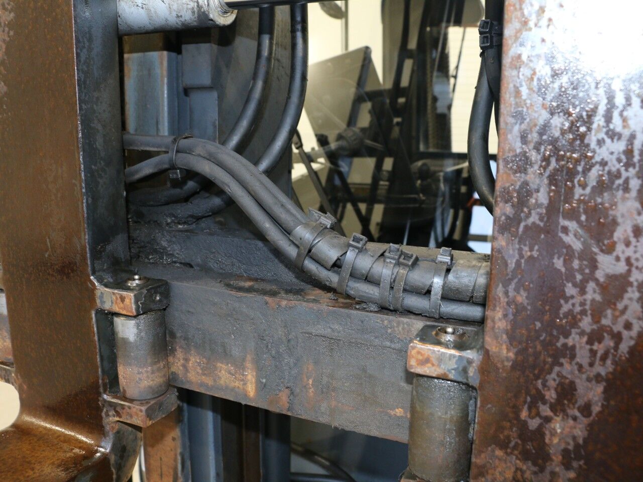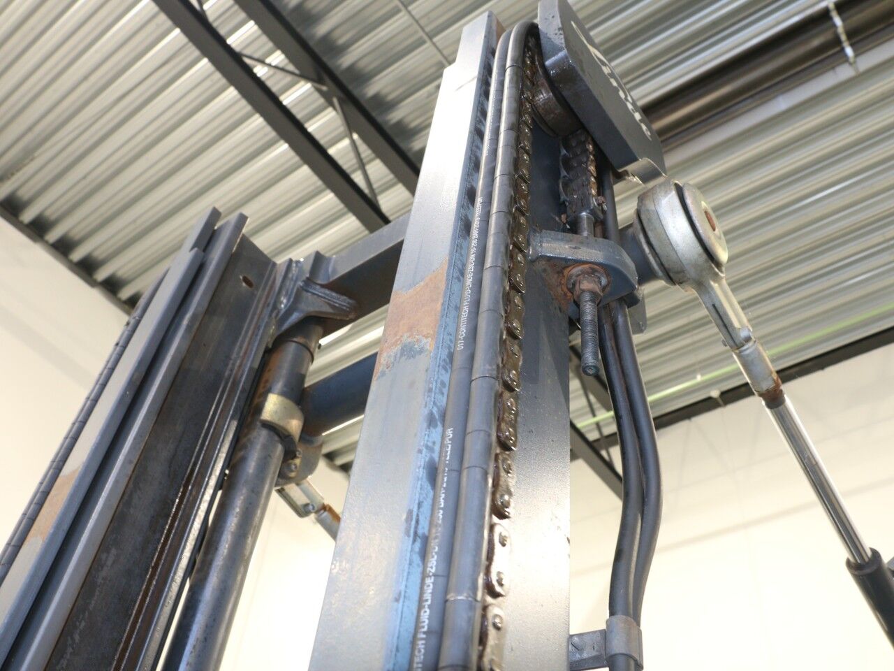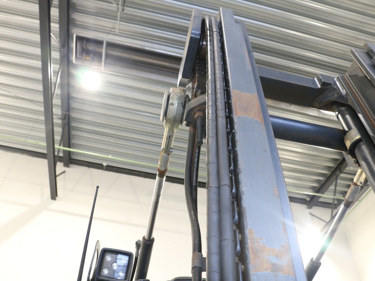 Venstre løftecylinder sveder i bunden ved forskruning/pakning, sprinkler defekt, slør i mast