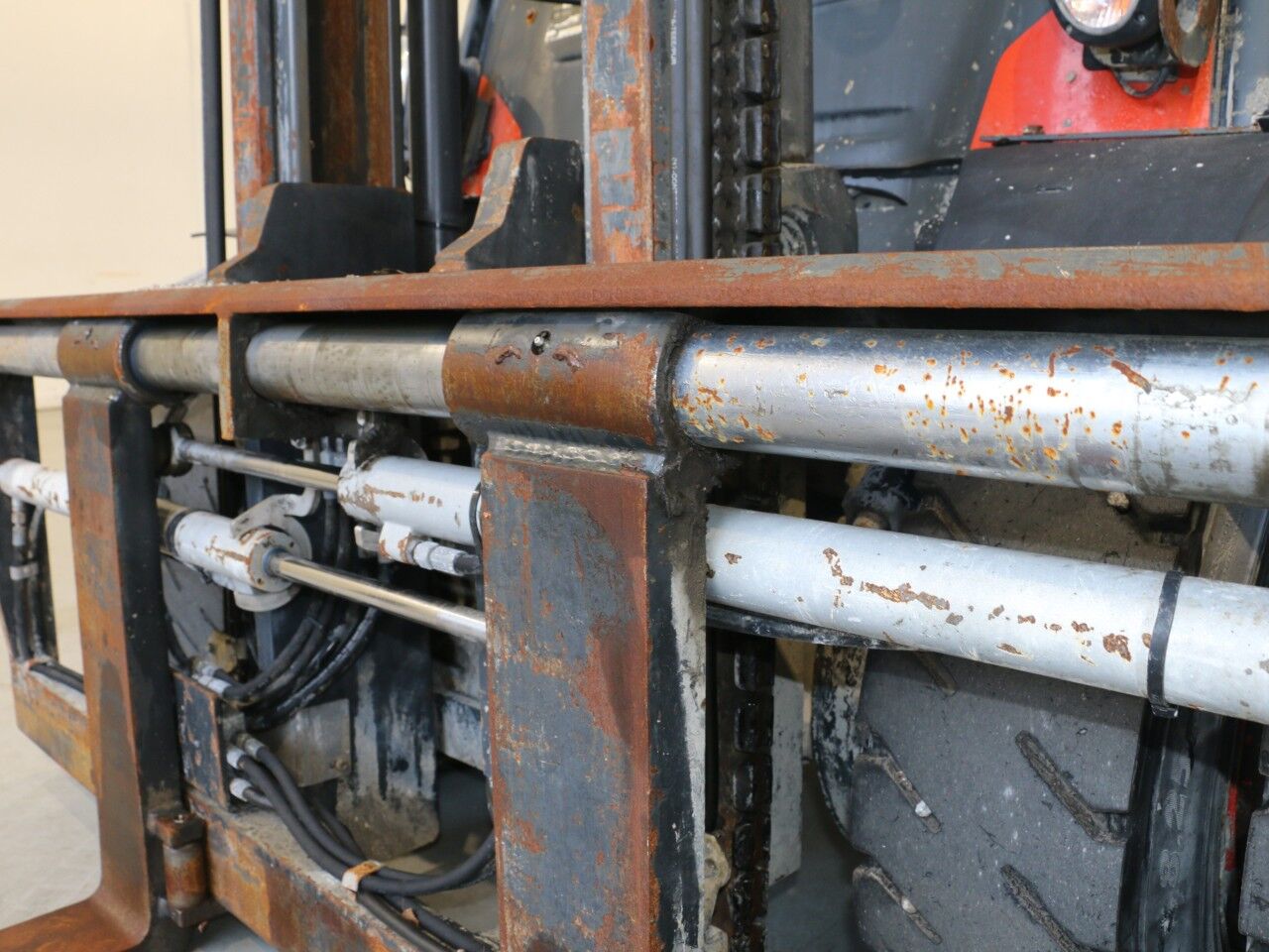 Gafler slidt over mål, højre tilt cylinder sveder, air condition virker ikke, radio virker ikke, indermast slidt