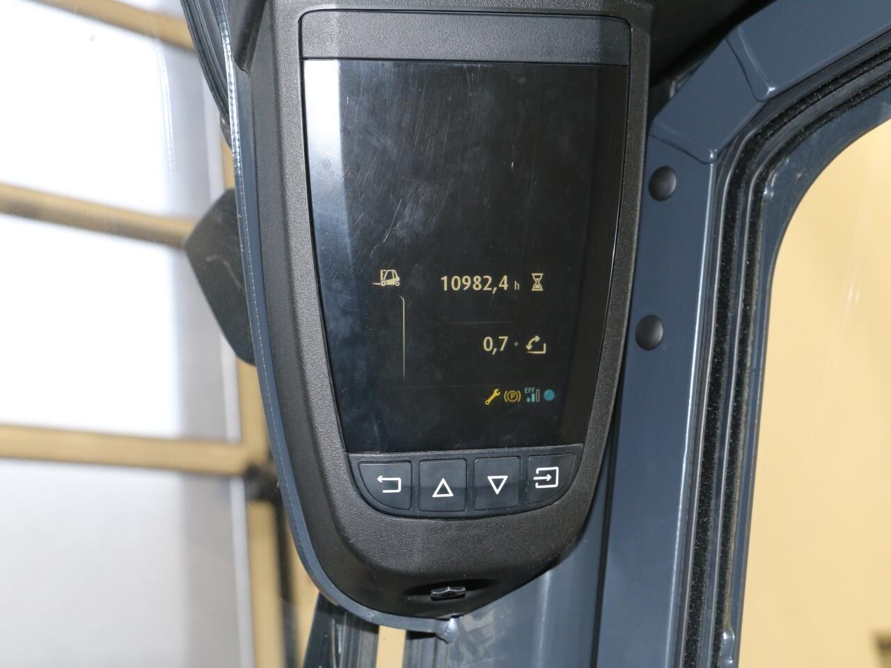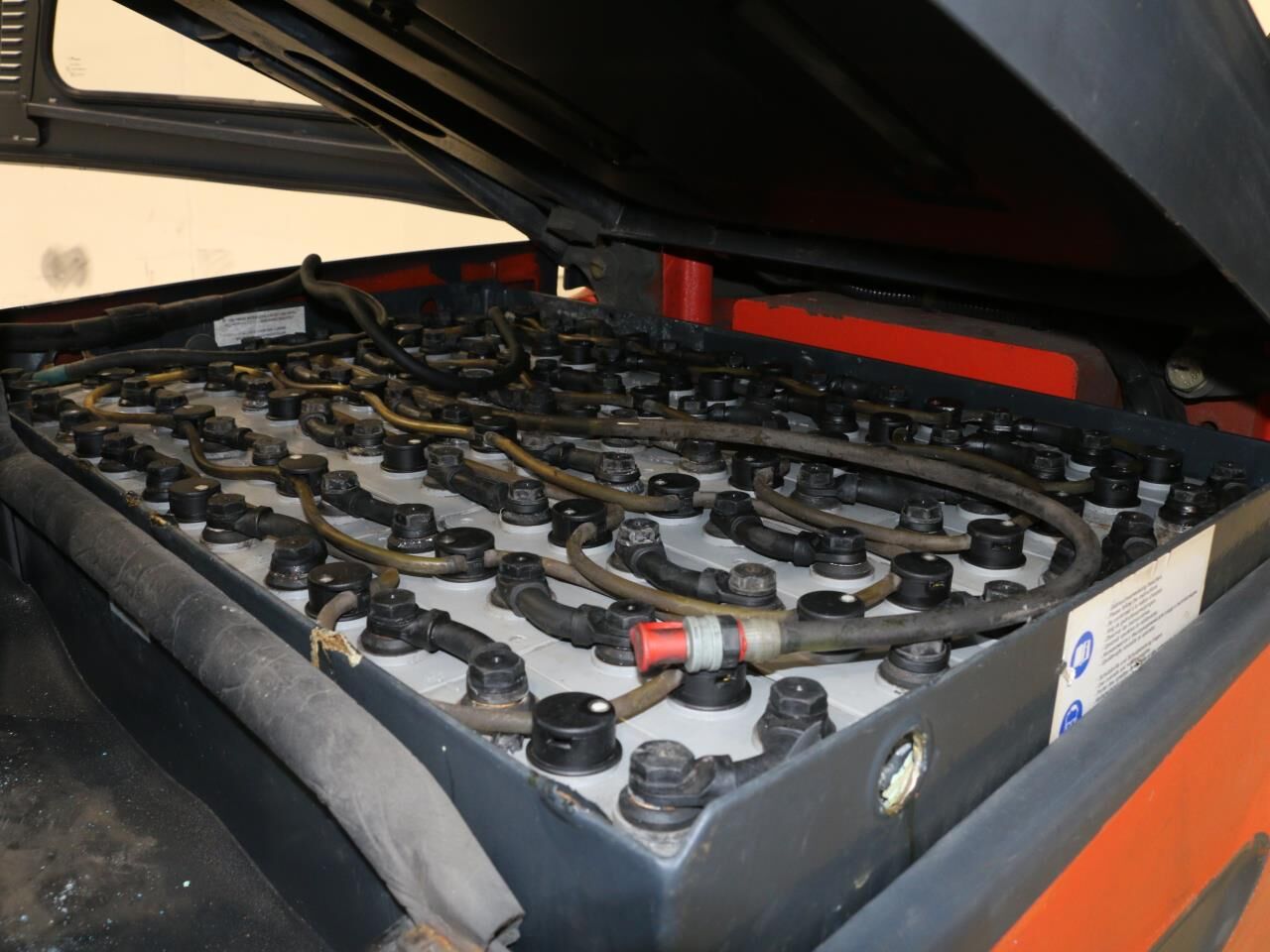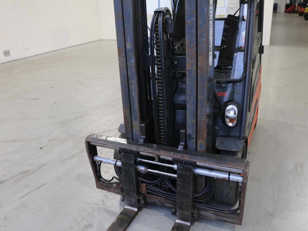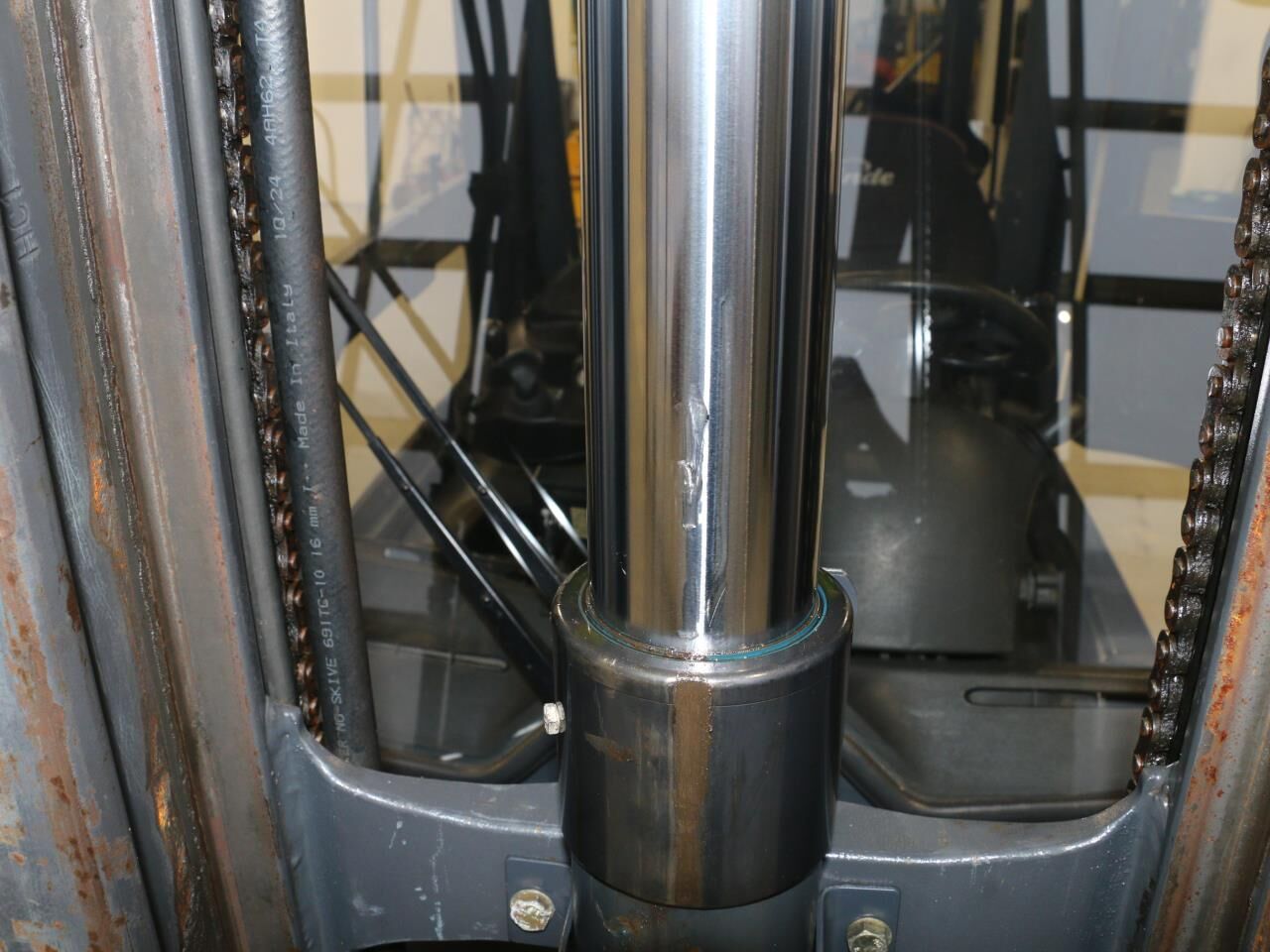 Mærker i cylinder til friløft, slør i mast, batteriindikator virker ikke